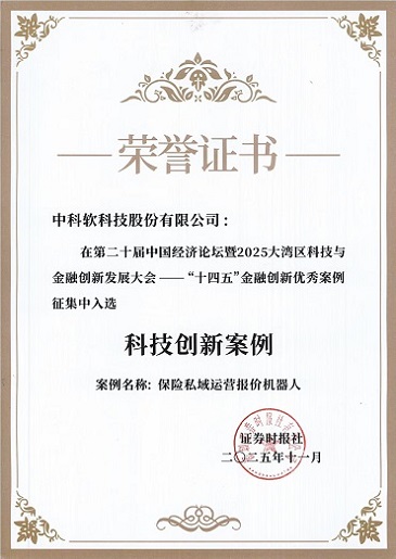 近日,中科软斩获由中国上市公司协会颁发的 “2025上市公司董事会最佳实践案例”奖,同时公司创新案例“保险私域运营报价机器人”成功入选“十四五”金融创新优秀案例。本次在公司治理与金融创新两个领域接连获得行业权威认可,充分证明了公司兼具高质量发展的稳健根基与科技创新的强劲动力,为未来长期价值提升注入了双重信心,共同助力公司的综合竞争力跃上新的台阶。