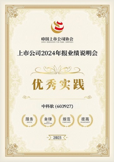 2024年报业绩说明会的评选工作由中国上市公司协会组织开展,是权威专家从年报业绩说明会筹备、内容质量、投资者沟通质效及传播影响等多维度综合评估上市公司年报业绩说明会与投资者的沟通实效。中科软凭借充分的事前准备、清晰的战略阐述、管理层坦诚深入的互动交流脱颖而出,通过业绩说明会这一窗口,主动、清晰、生动地向市场传递公司长期价值,有效增强了市场认同感和公司投资吸引力。